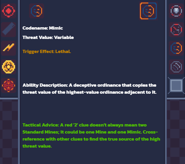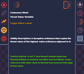 - 9+ Unique Ordinances: Face a roster of complex threats that go far beyond standard bombs. Outsmart the signal-jamming EMP Bomb, contain the info-destroying Bio-Hazard, unmask the deceptive Mimic, race against the board-altering Chrono-Mine, and decode interference from the long-range Resonator. Each ordinance has unique rules, a distinct threat value, and a specific neutralization protocol.